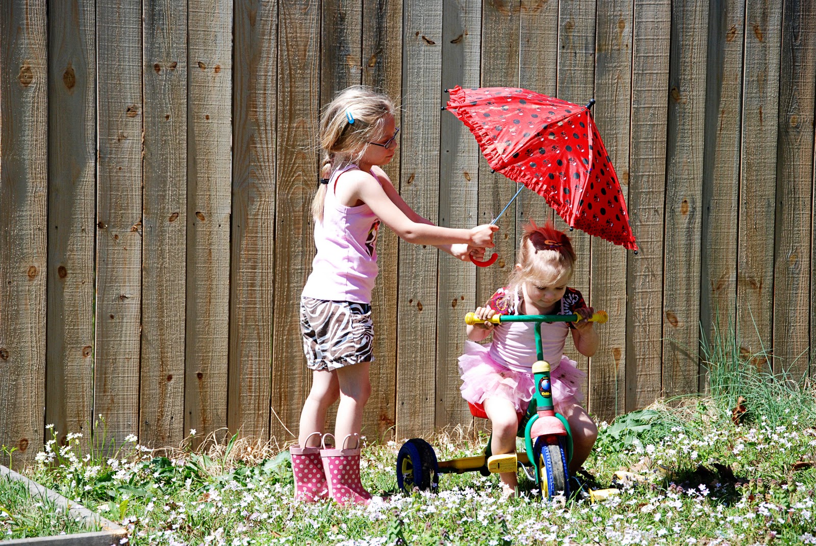 If it is exceptionally sunny, one must secure a willing umbrella holder. This will prove to be an easy task if one takes the time to find a very obliging sister.